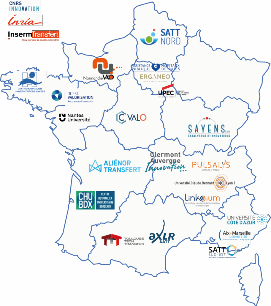 COMS@N fédère 24 membres dont des universités, CHU, organismes de recherche et leurs OTT (organismes de transfert de technologie), des SATT (et SATE) et acteurs clés de l’écosystème d’innovation en santé numérique.